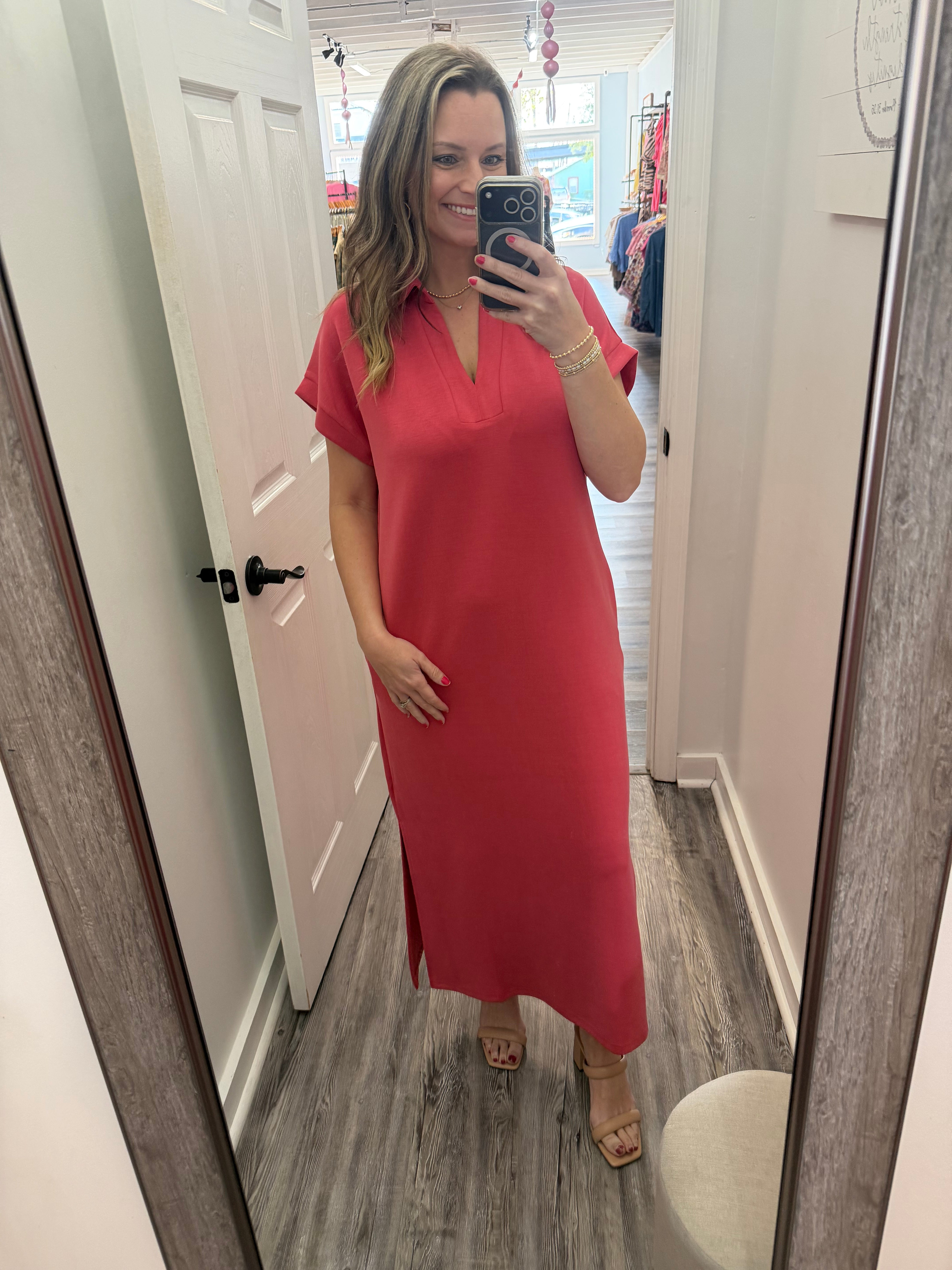 “Fresh Grace” Coral Midi Dress