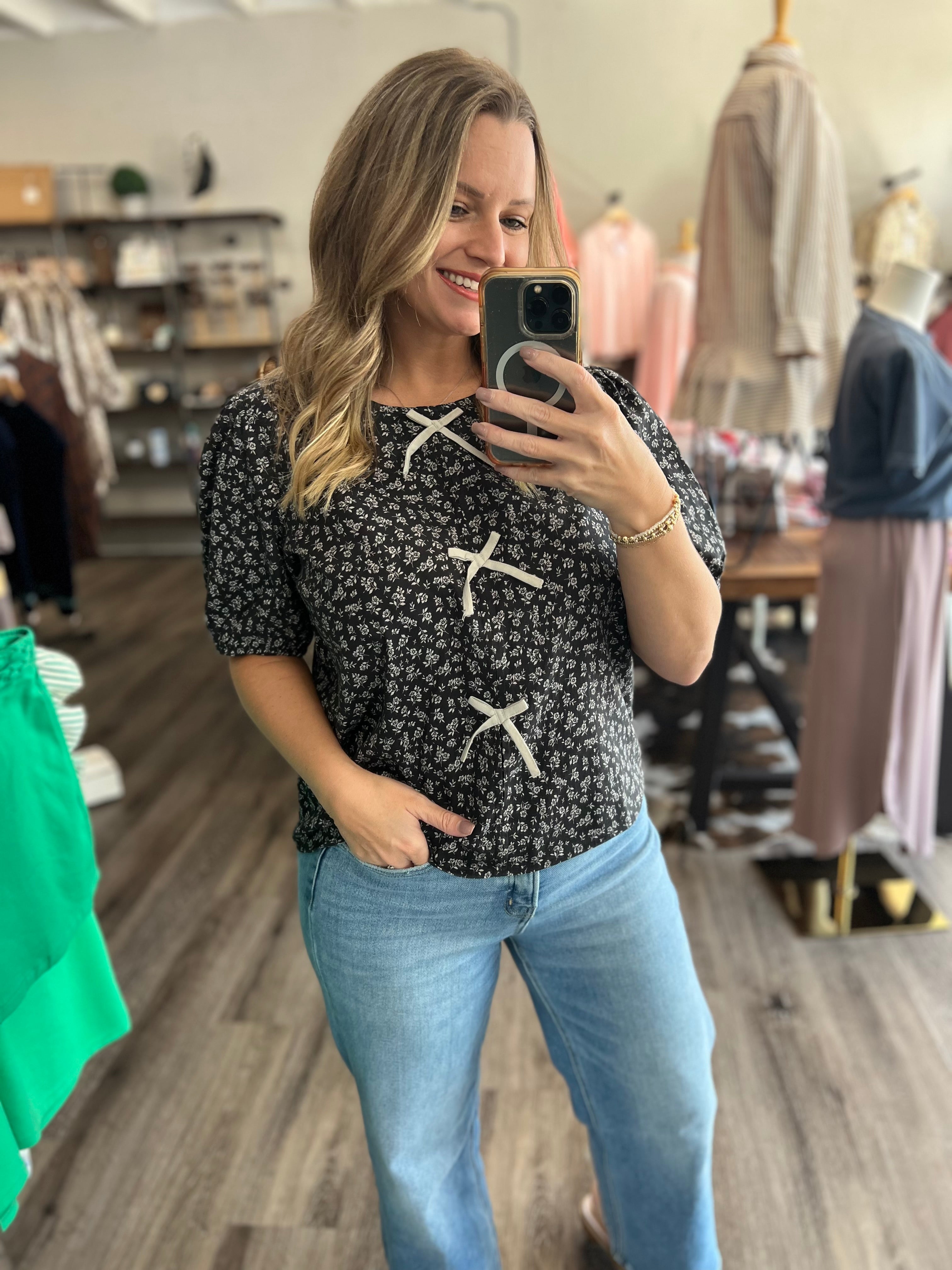 $54.99$0.00Available: In stockbow detail floral blouse, back keyhole with button closure, 100% cotton