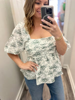 floral pleated puff sleeve top with smocked back