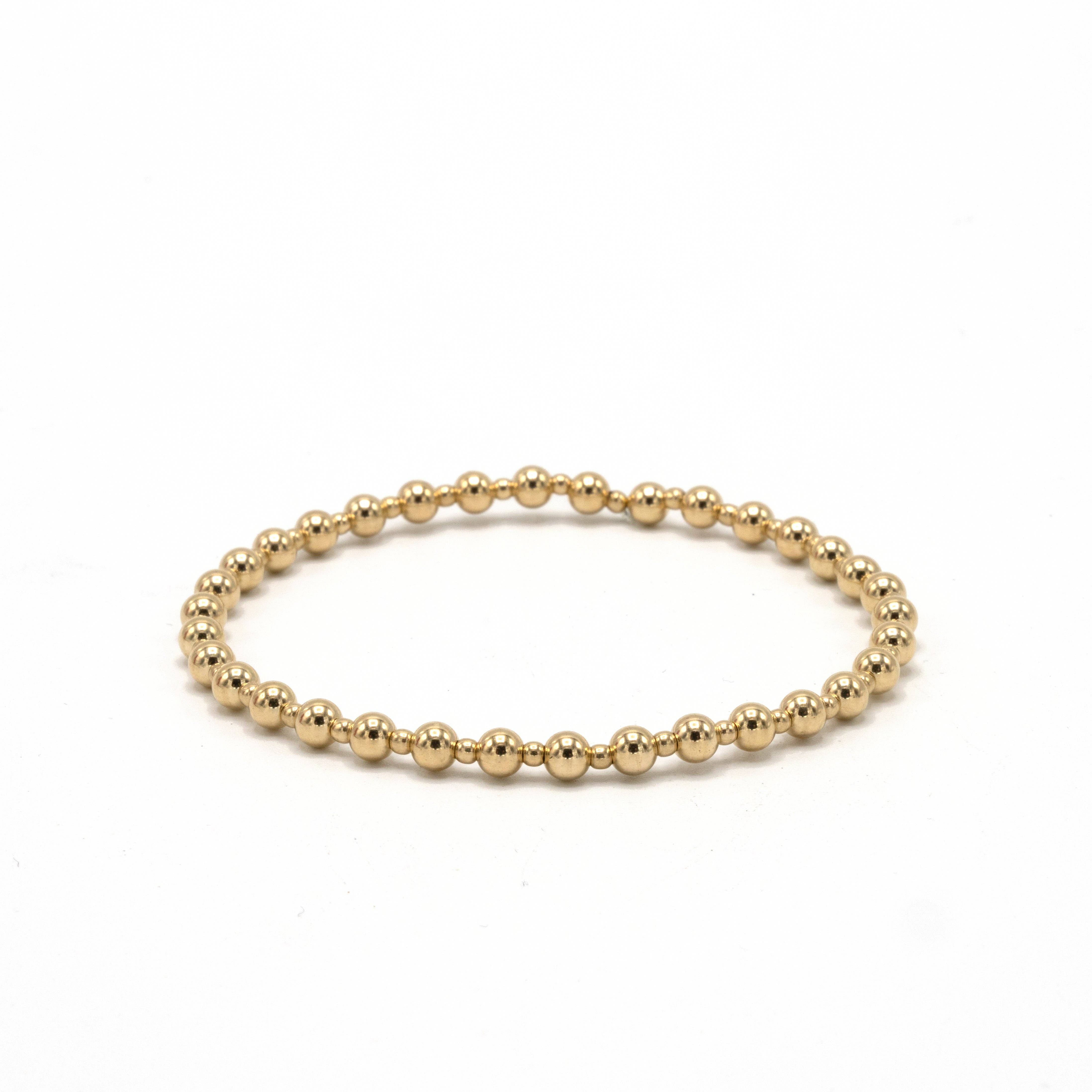 Enhance your bracelet collection with our 14k gold filled stretch bracelet featuring a unique 4-2-4mm mixed bead design. Perfect worn alone or layered for added style. This piece is part of the erin gray waterproof collection and comes in 6.5" and 7" sizes for a comfortable fit.