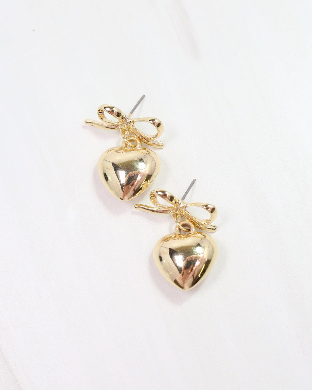 This absolutely precious earring has a shiny metal bow post with a puffed heart drop accent. Whether you’re dressing up for a special occasion or adding a cute touch to your everyday look, these earrings are sure to make a lovely statement.