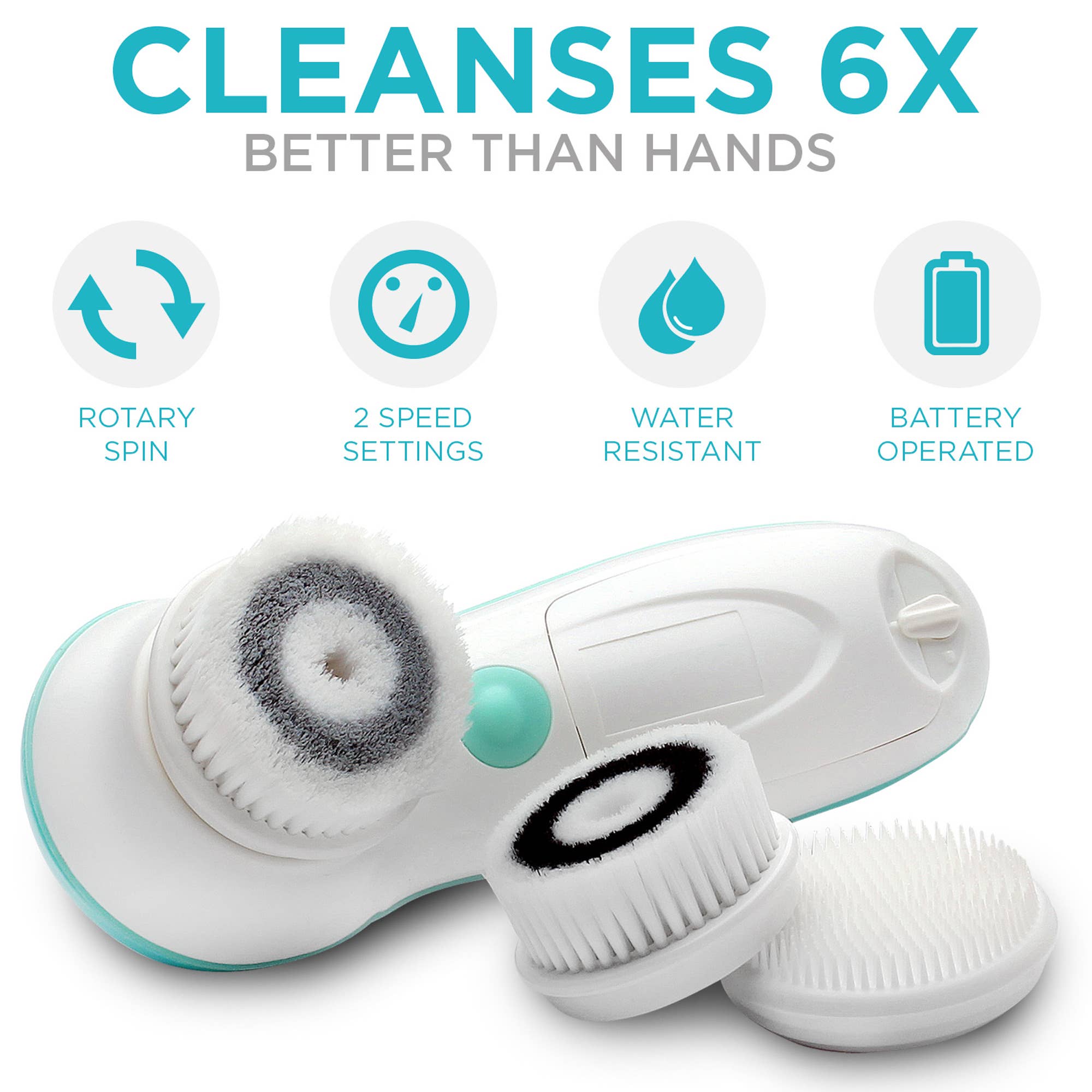 Cora 3 Facial Cleansing Spin Brush with 3 heads and case. Time to up your skincare game with the 3-in-1 Cora cleansing brush. This powerful cleansing tool helps minimize pores, improve texture, and reveal healthy, glowing skin. The Cora 3 comes with a trio of unique cleansing brush heads for daily and weekly exfoliation customizable for your skin concerns. It can be stored in the travel case for hygienic storage and ultimate portability. Safe for sensitive skin and suitable for all skin types.