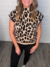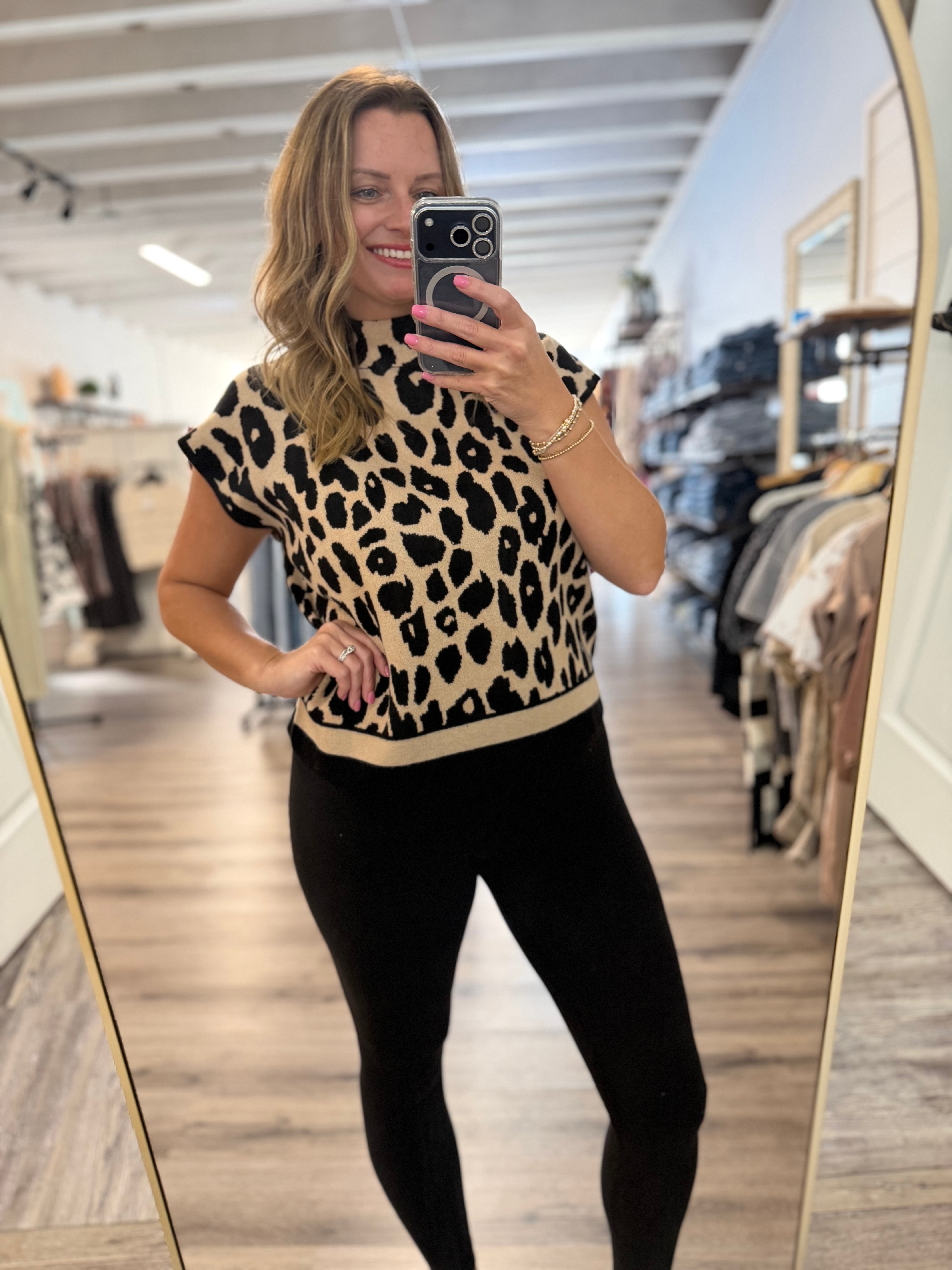 Animal print mock neck sweater knit pullover top. Unlined. Knit. Non-sheer. Lightweight.