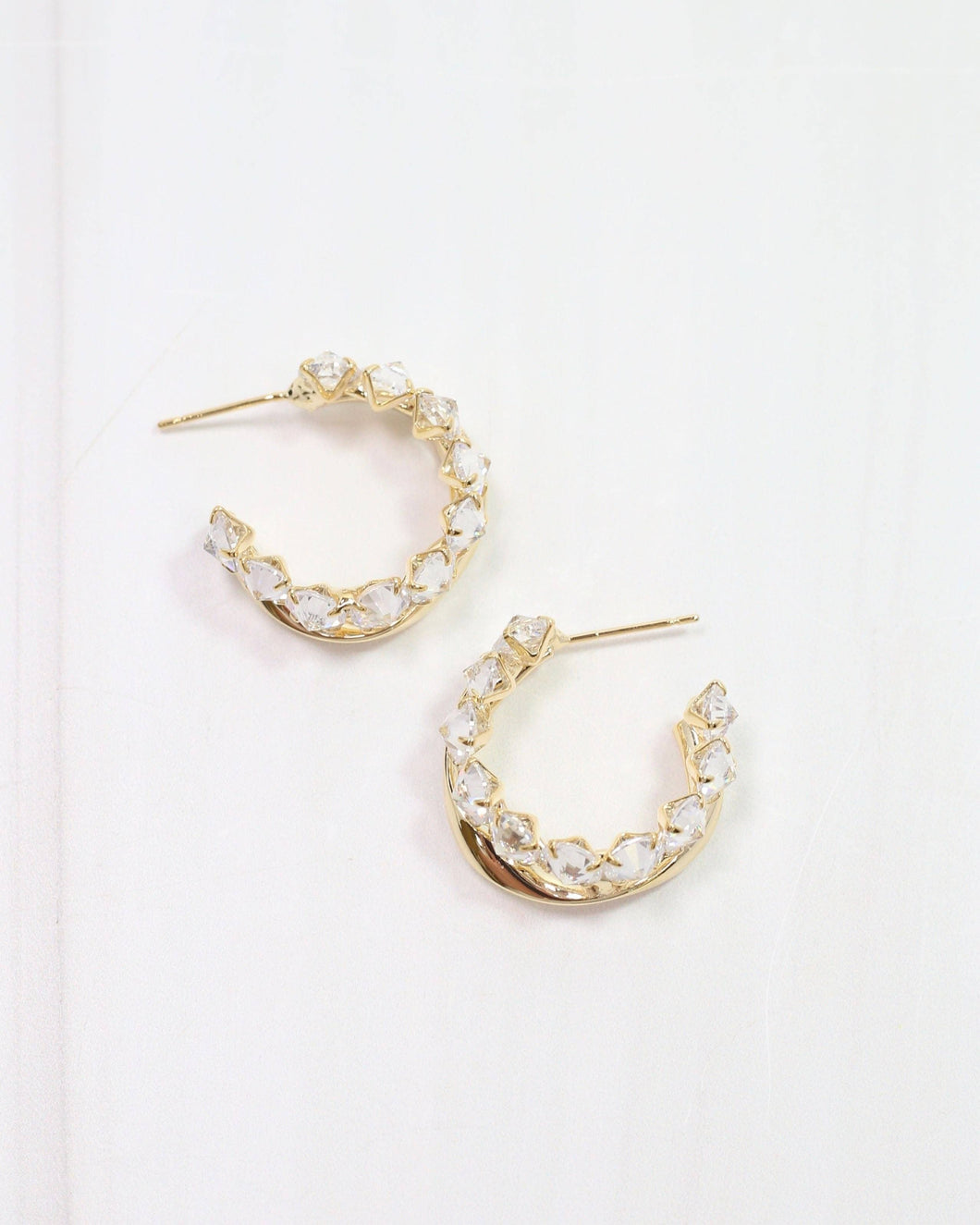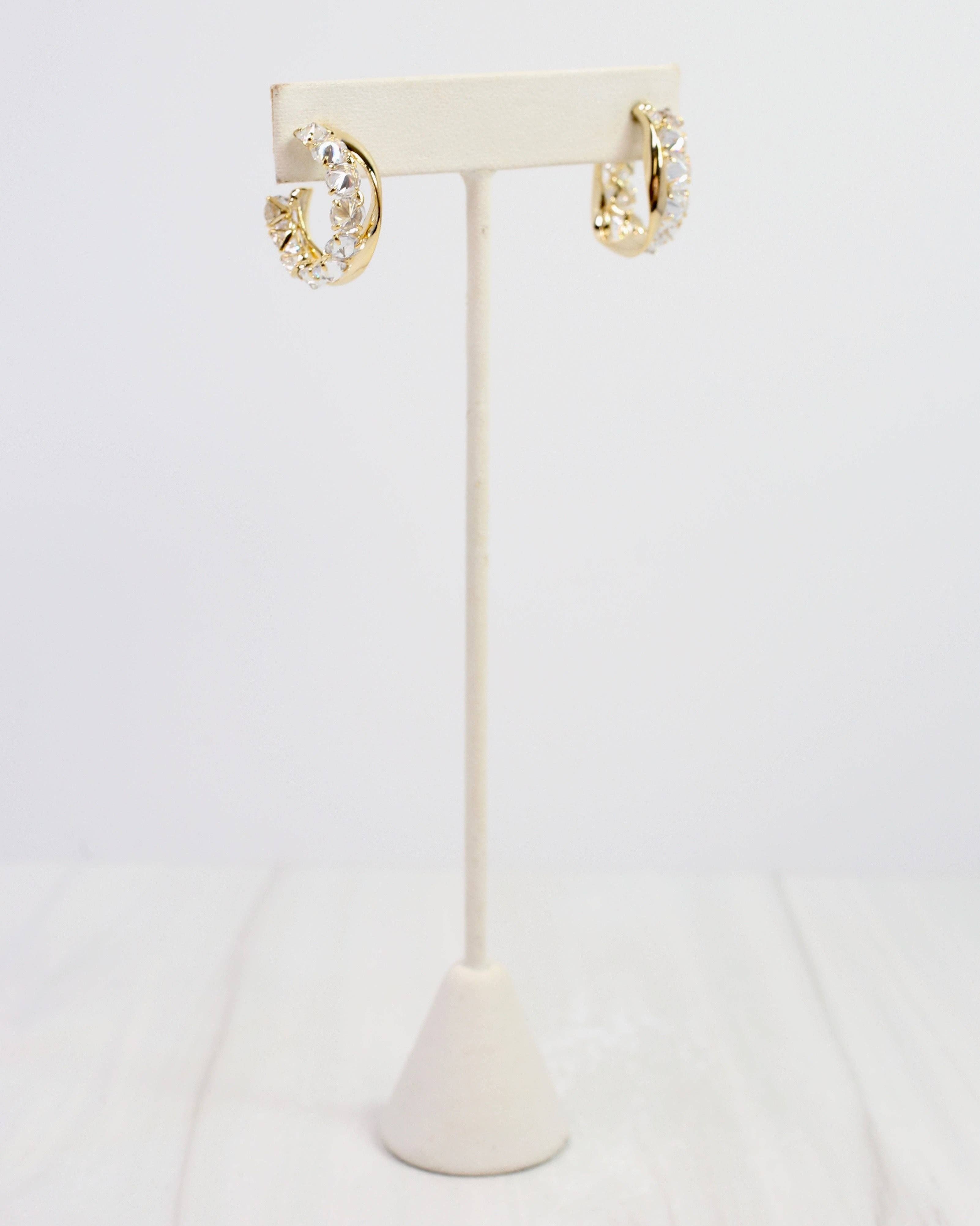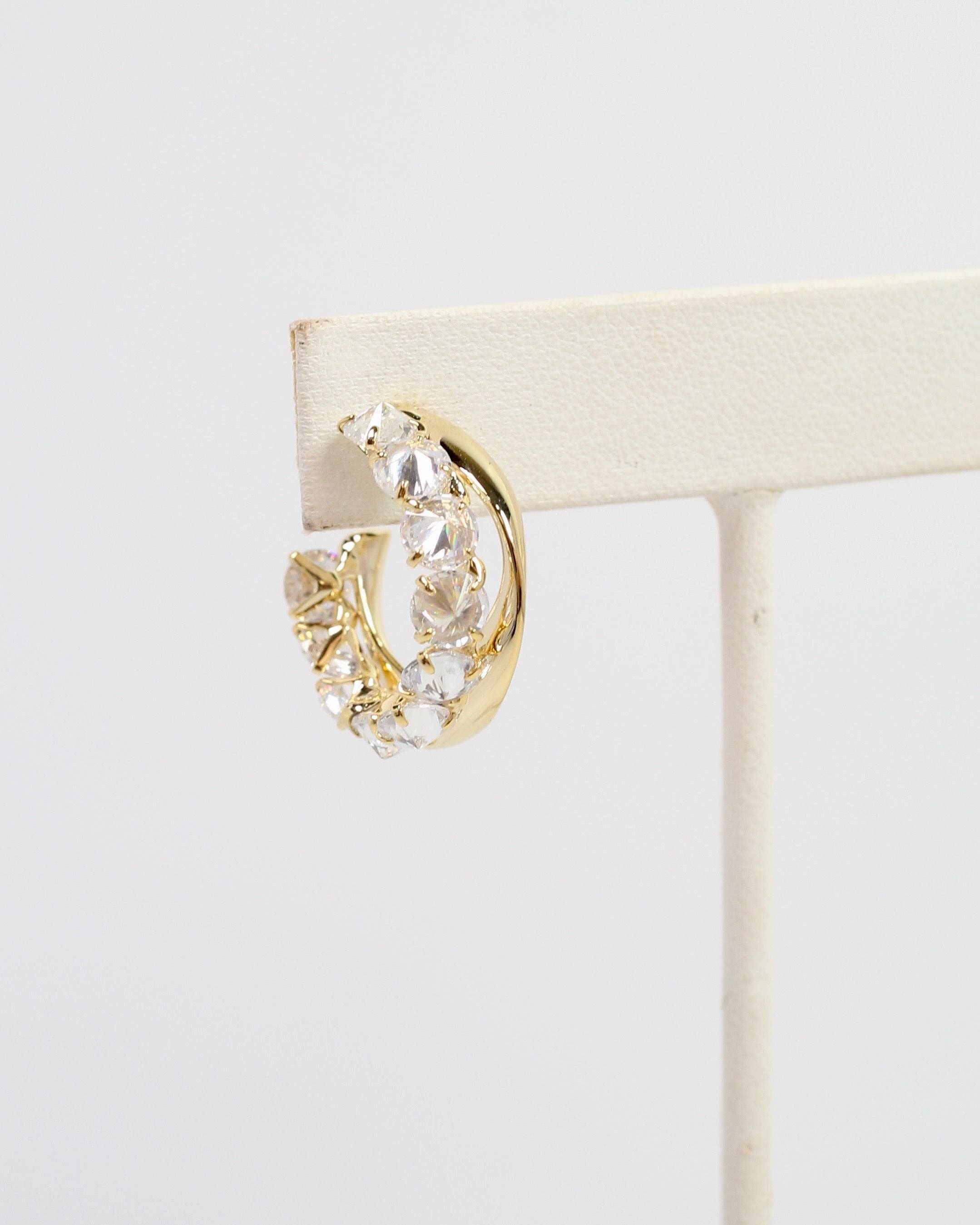 Sparkle like you mean it with our Paris Gold and CZ Hoops! These fun earrings combine dazzling CZ stones with rippled gold for a playful twist on elegance. Your earlobes will thank you for the instant party upgrade!