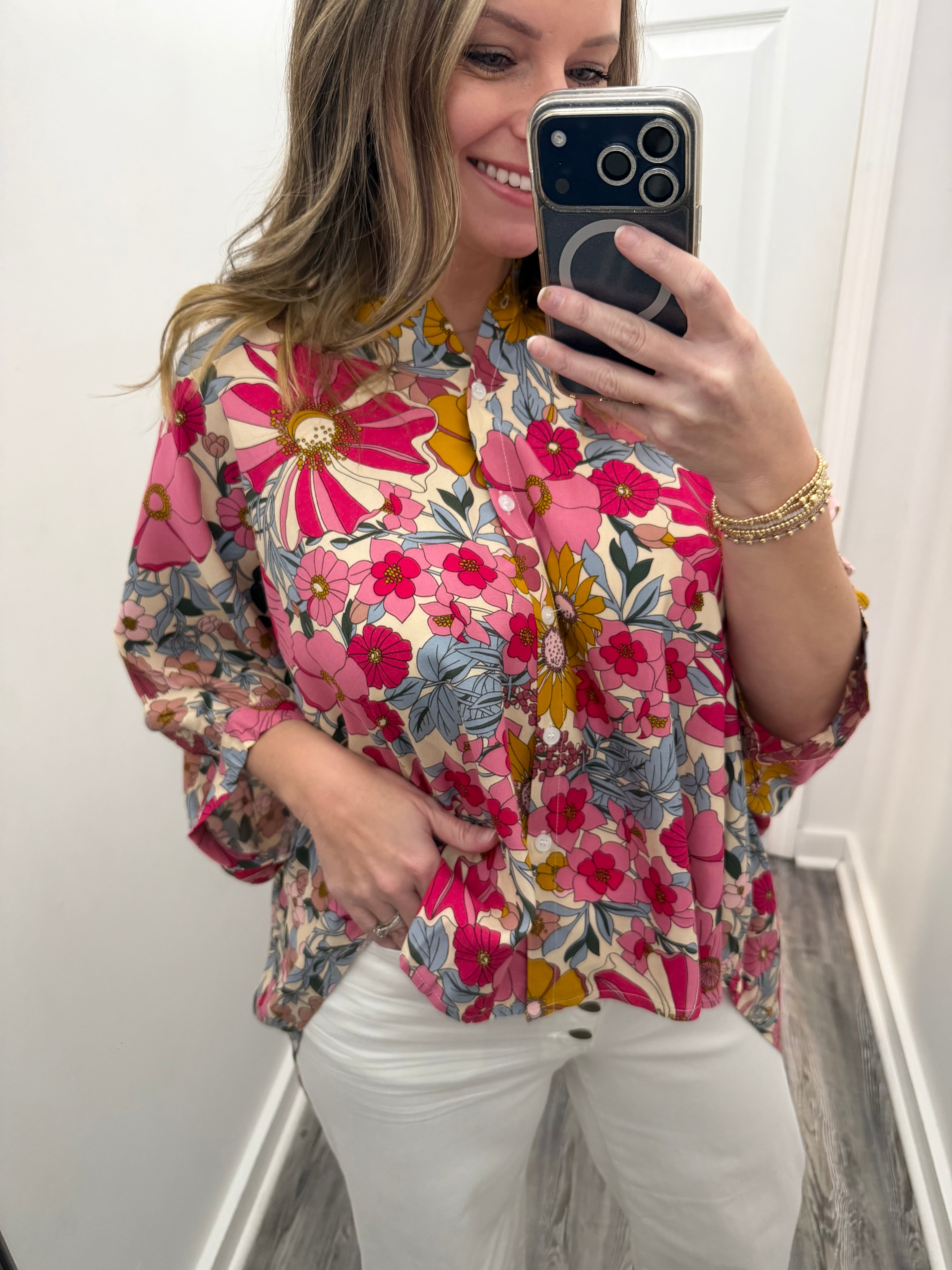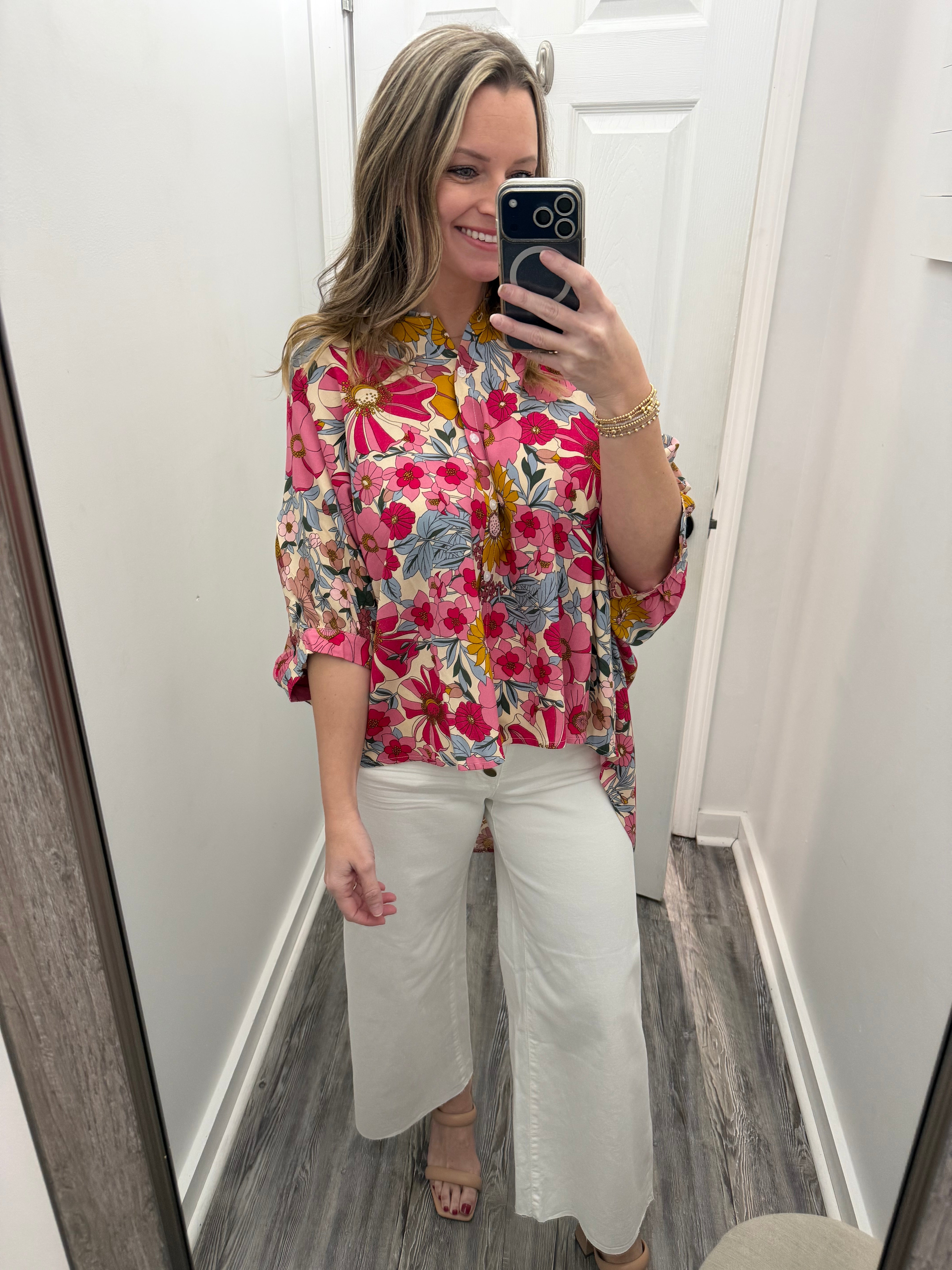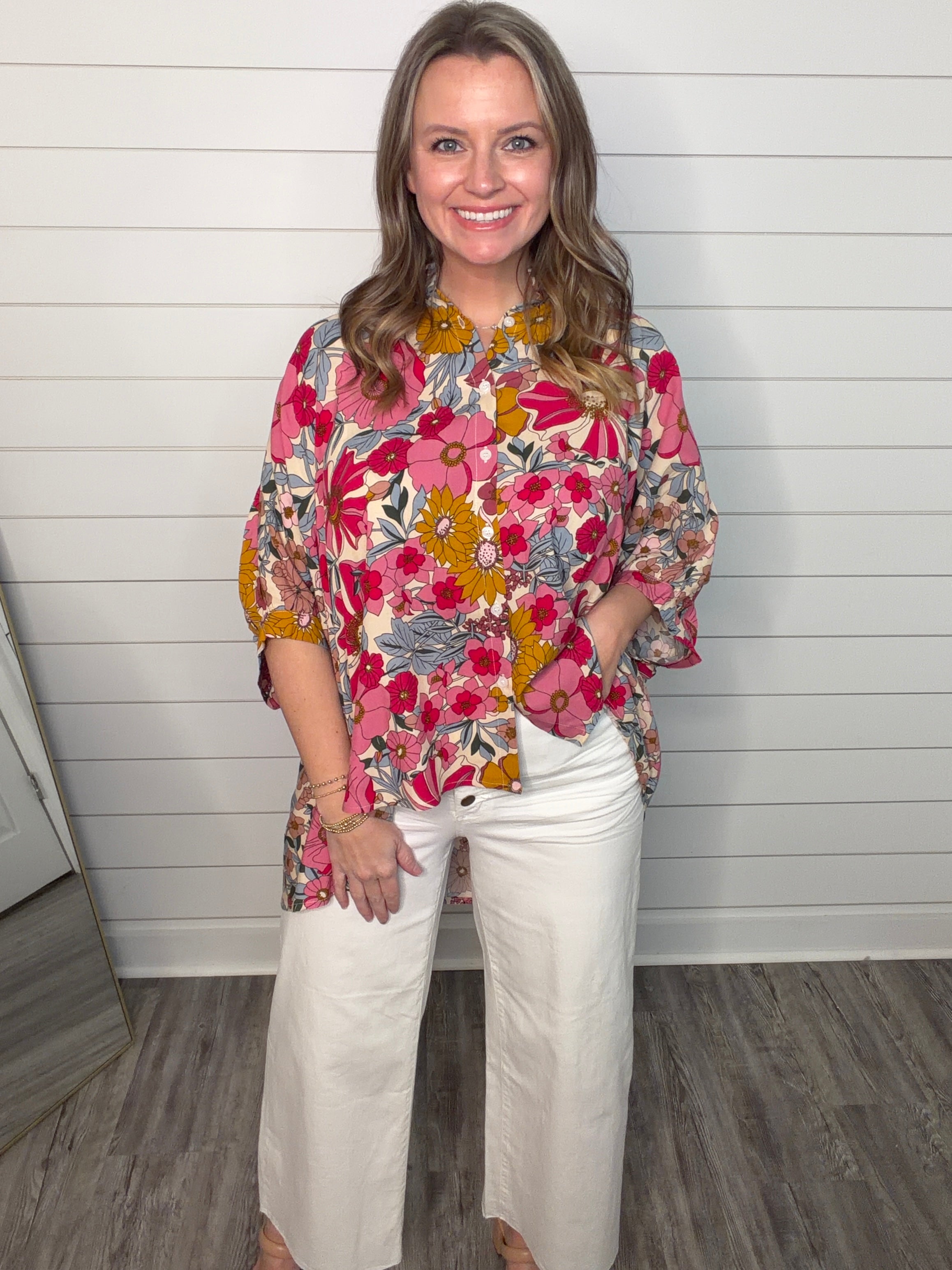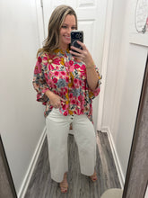 "Morning Dew" Red/Pink Puff Sleeve Top