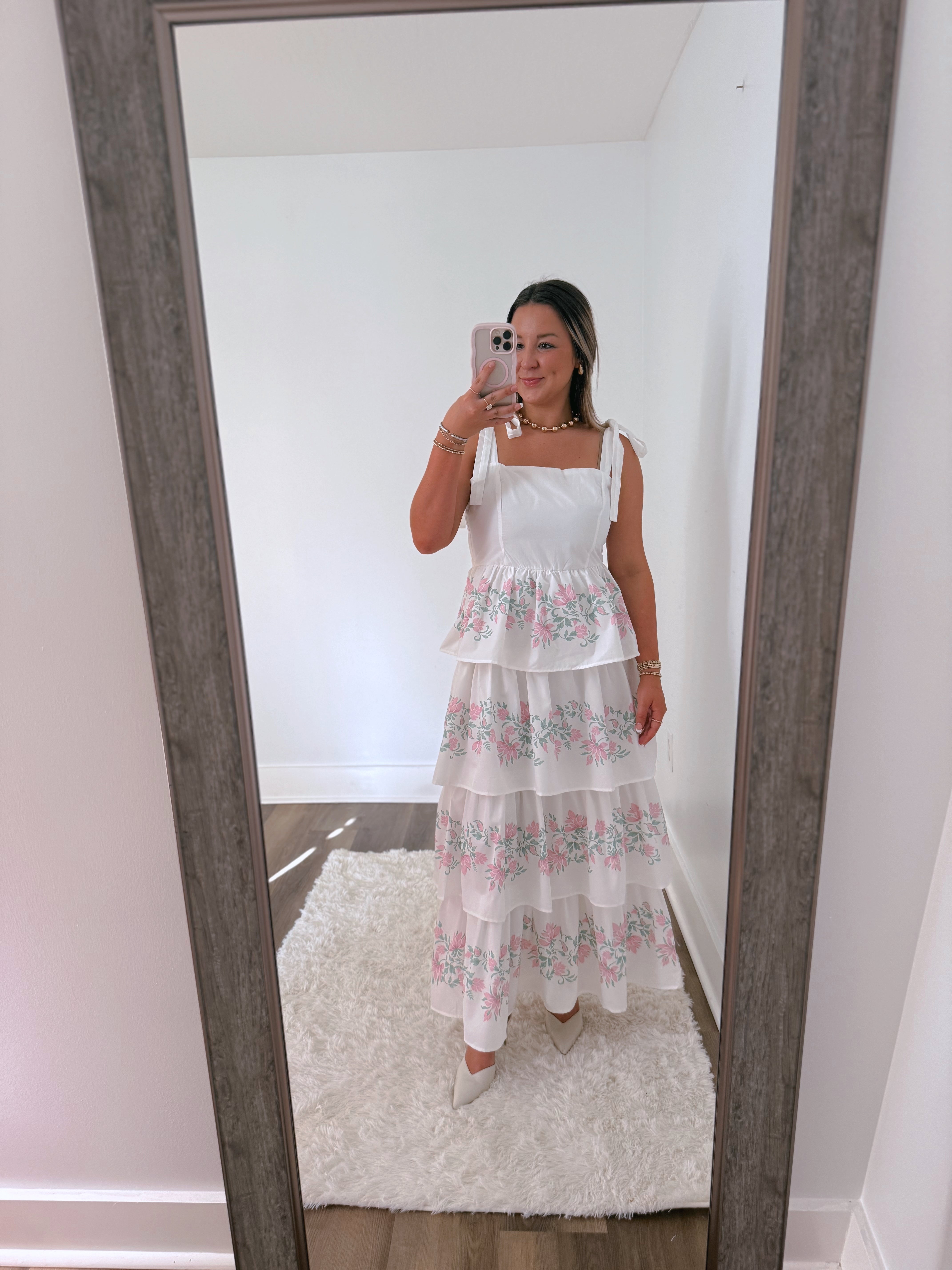 Double lined Dress with floral ruffle detail