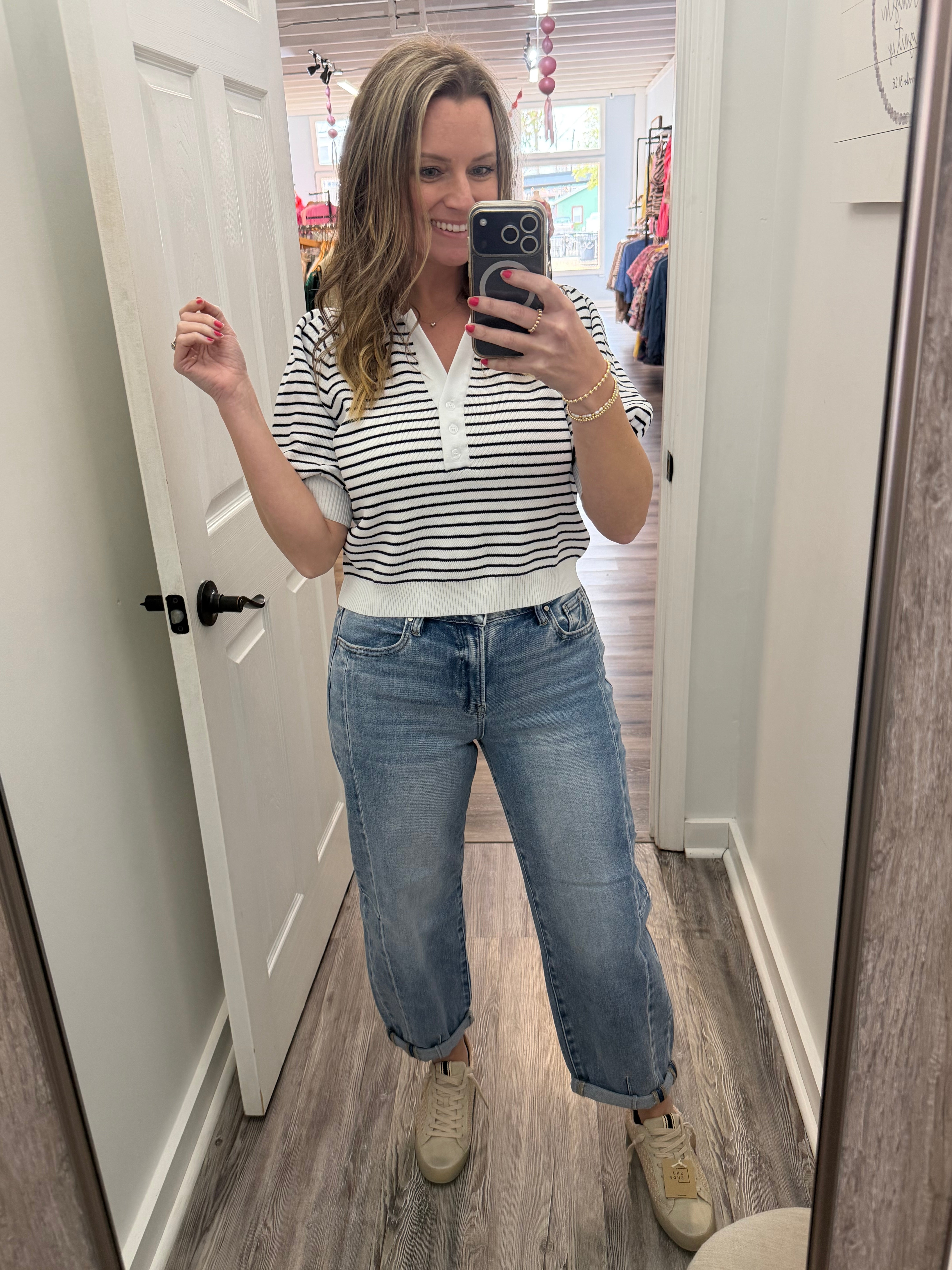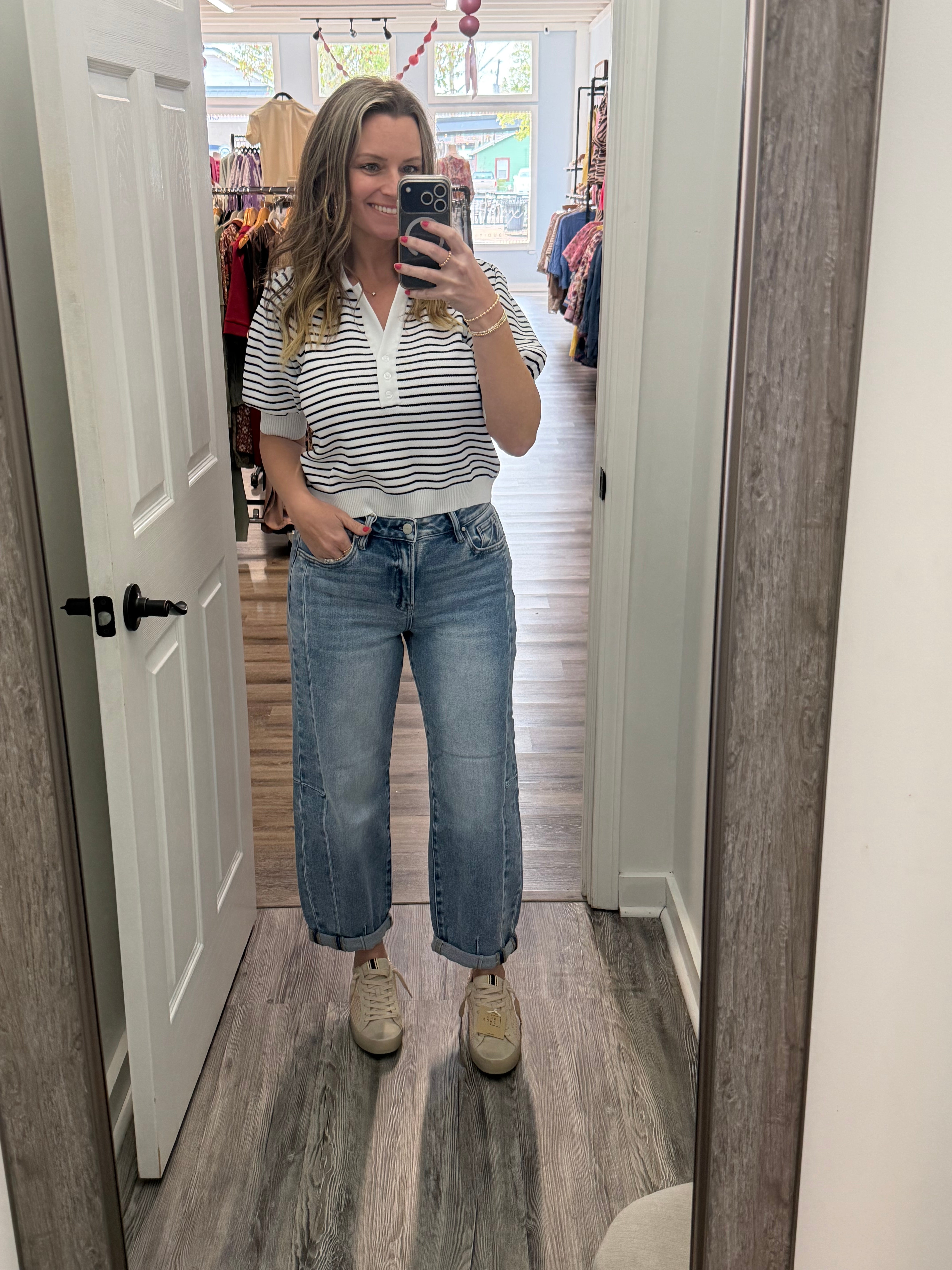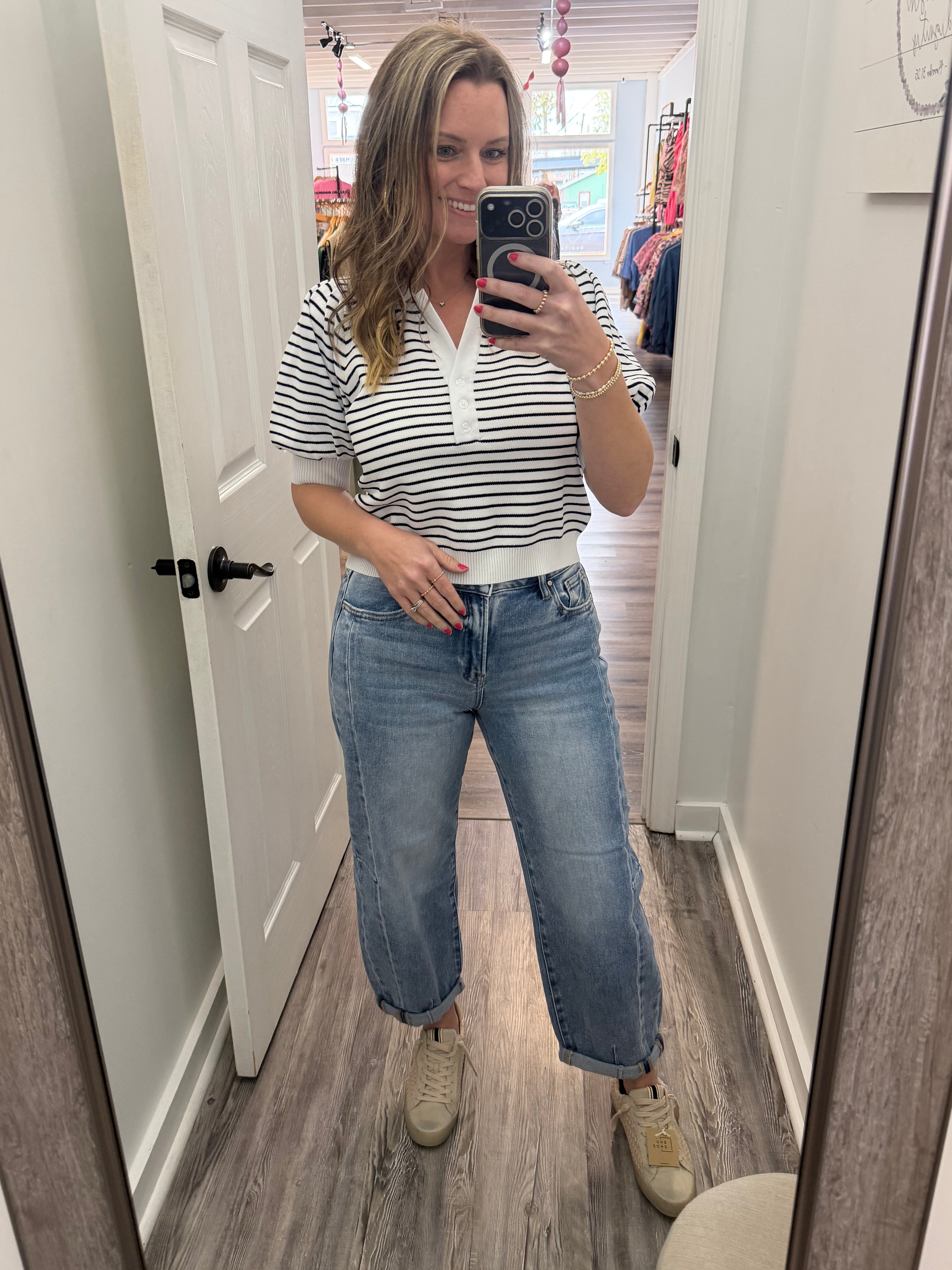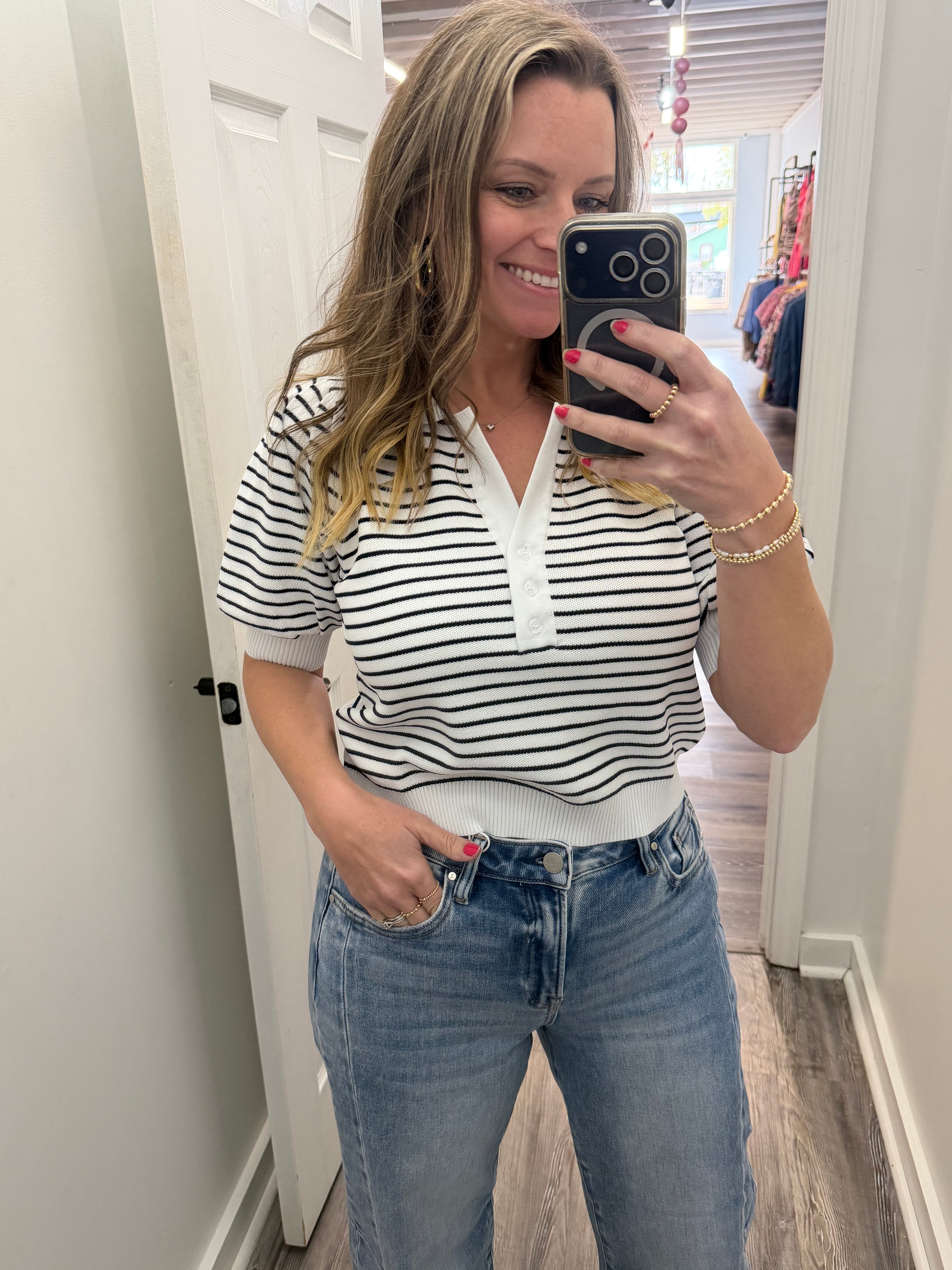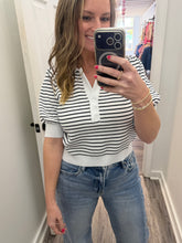 Black and White Strip Bubble Sleeve Top