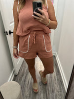 zig zag trim drawstring shorts