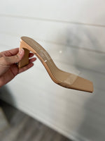 square toe, nude in color, clear straps